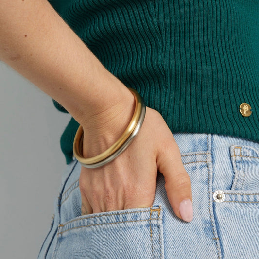 Bangle armband met rechthoeken | Goud- en zilverkleurig