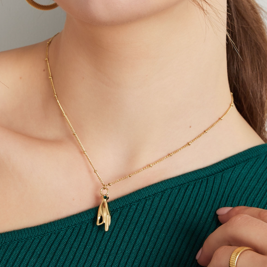 Subtiele ketting met handje en steentje | Groen | Goudkleurig