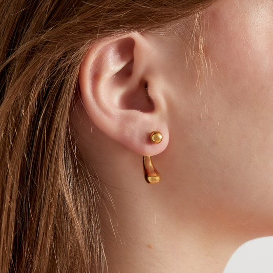 Oorbellen met knopje en bedel aan achterkant | Goudkleurig
