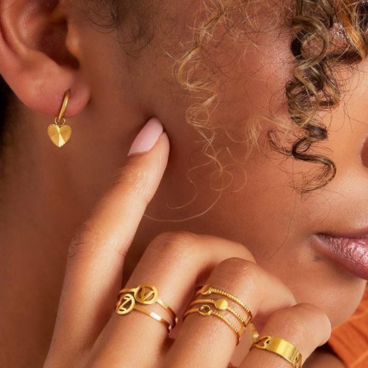 Oorbellen met hartjes met patroontje | Goudkleurig
