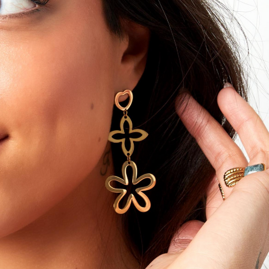 Statement oorbellen met hartje en bloem | Goudkleurig