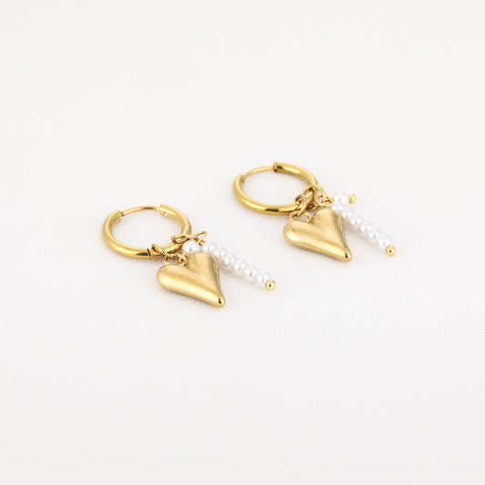 Oorbellen met hartje en witte kraaltjes | Goudkleurig