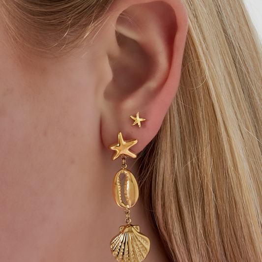 Oorbellen met schelpje en kraaltjes | Goudkleurig