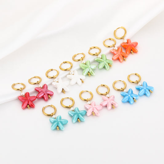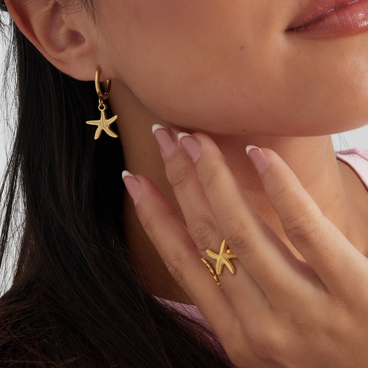 Oorbellen met 3 zeesterren op rij | Goudkleurig