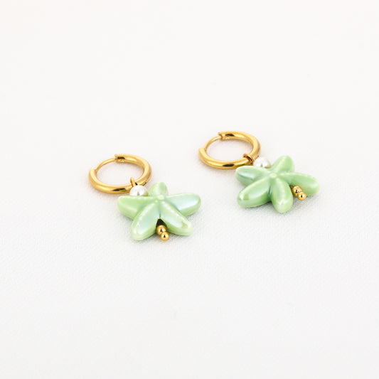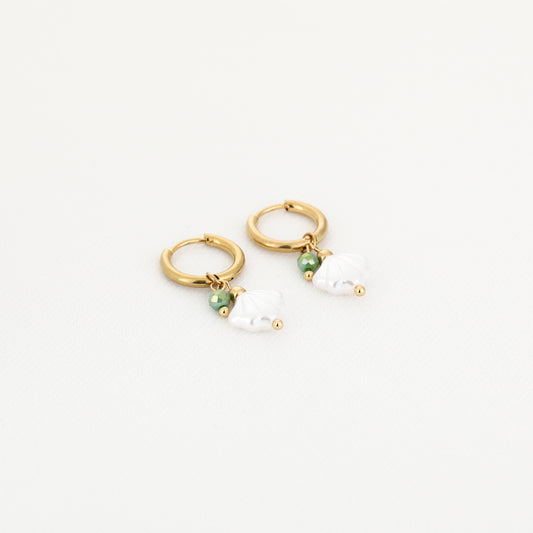 Oorbellen met schelp & groen kraaltje | Goudkleurig