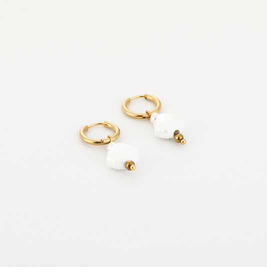 Oorbellen met wit schelp kraaltje | Goudkleurig