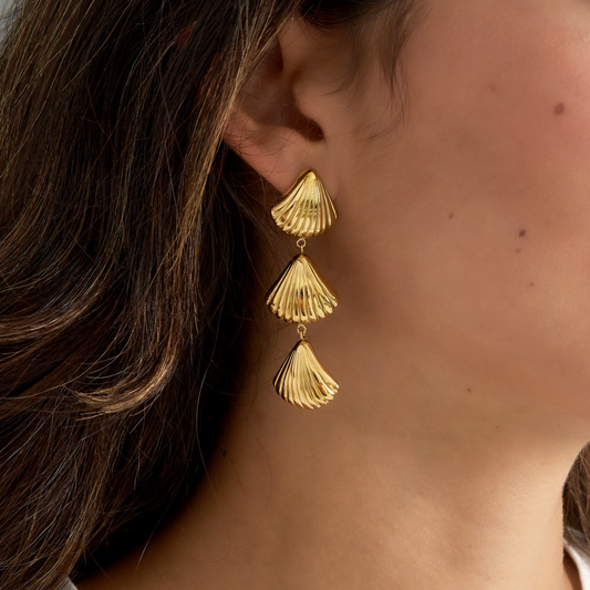 Oorbellen met 3 schelpjes op een rij | Goudkleurig
