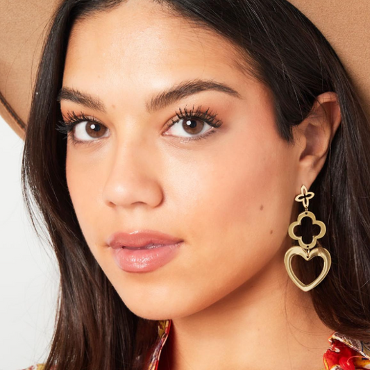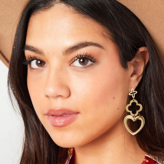 Statement oorbellen met hartje, klaver en een bloem | Goudkleurig