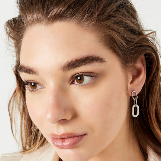 Statement oorbellen met 2 schakels | Zilverkleurig