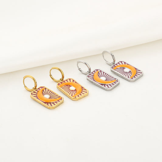 Oorbellen met gekleurde maan bedel | Zilverkleurig