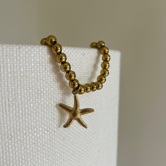 Bedelketting met schelpjes, parels en zeester | Zilverkleurig