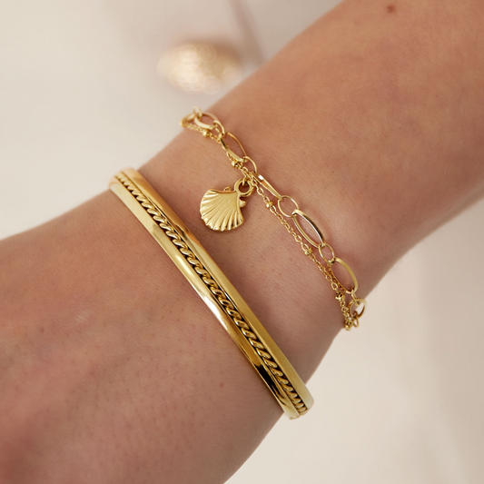 Armband met dubbele laag en schelpje | Zilverkleurig