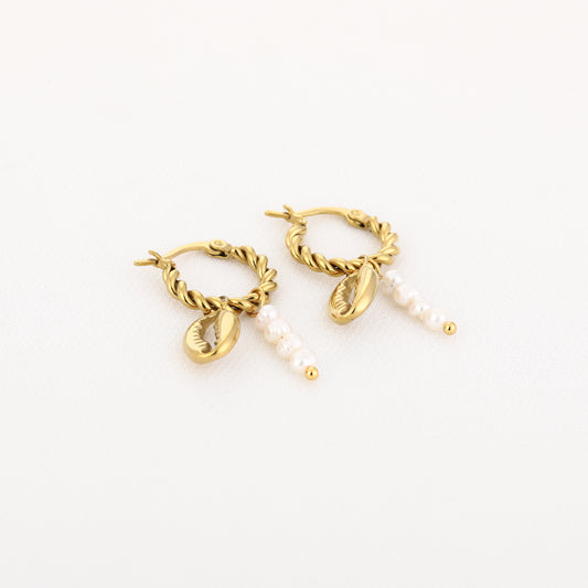 Oorbellen met schelpje en kraaltjes | Goudkleurig