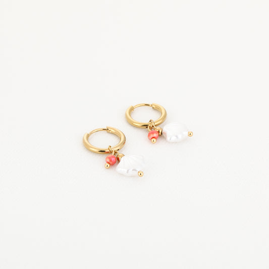 Oorbellen met schelp & oranje kraaltje | Goudkleurig