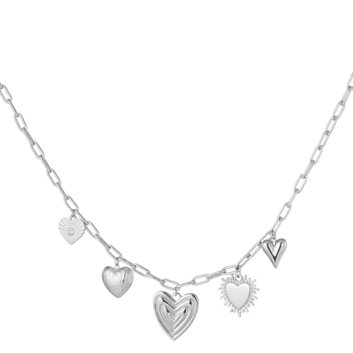 Hoe leuk is deze zilveren hartjes bedelketting! Deze schakelketting is gemaakt van stainless steel en daardoor waterproof. Deze zilveren bedelketting heeft allerlei verschillende hartjes als bedel. ✨