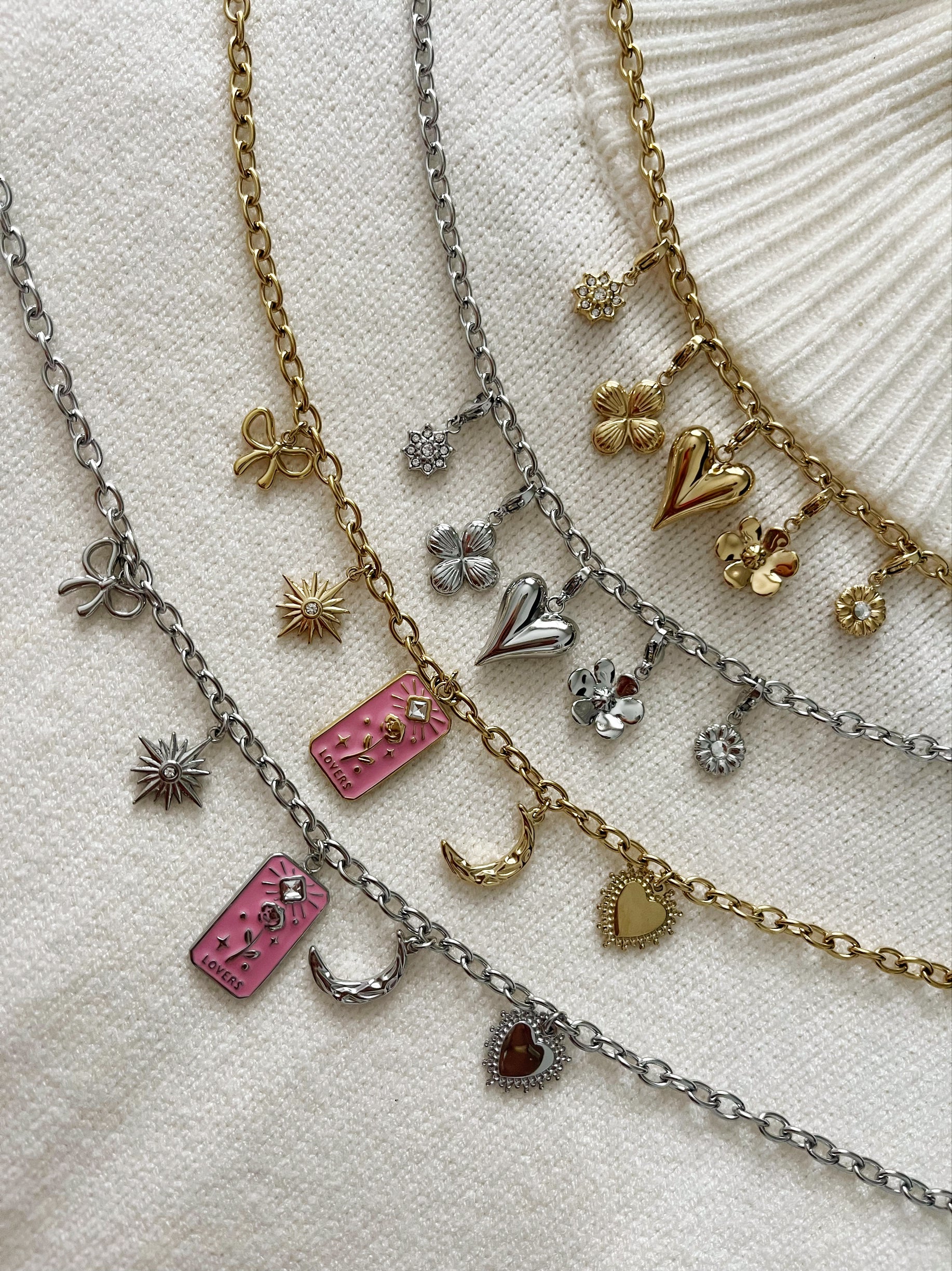 UitverkochtBedelketting met hartjes bedels | Zilverkleurig
