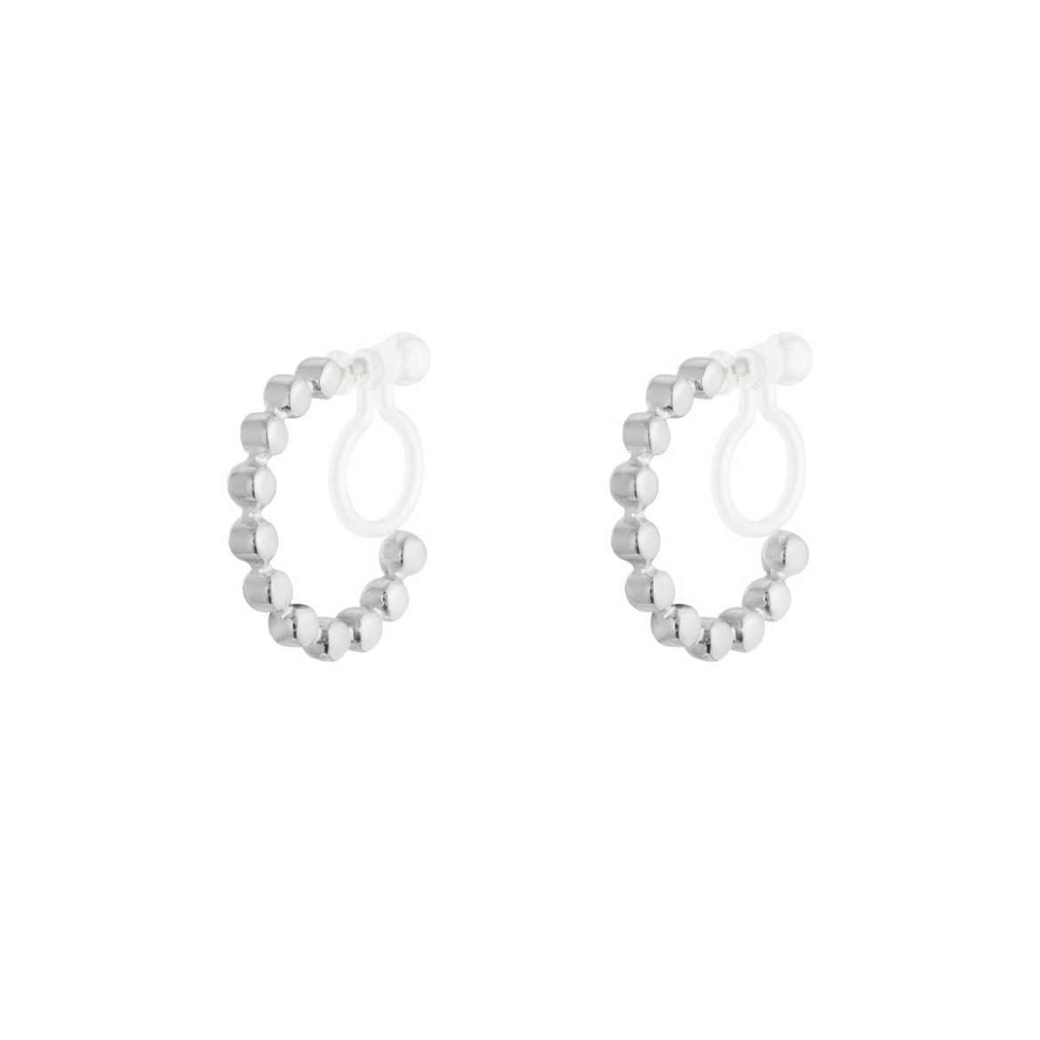 Deze zilverkleurige clip oorbellen zijn kleine oorringetjes met een soort balletjes patroon. Deze clip oorbellen zijn ideaal als je geen gaatjes hebt, maar toch graag oorbellen draagt. Je klikt ze makkelijk om je oor. De oorbellen zijn gemaakt van stainless steel. Ze zijn dus waterproof, verkleuren niet en zijn geschikt voor gevoelige oren. Deze clip hoops zijn licht en comfortabel. Ook zijn ze makkelijk te combineren. ✨