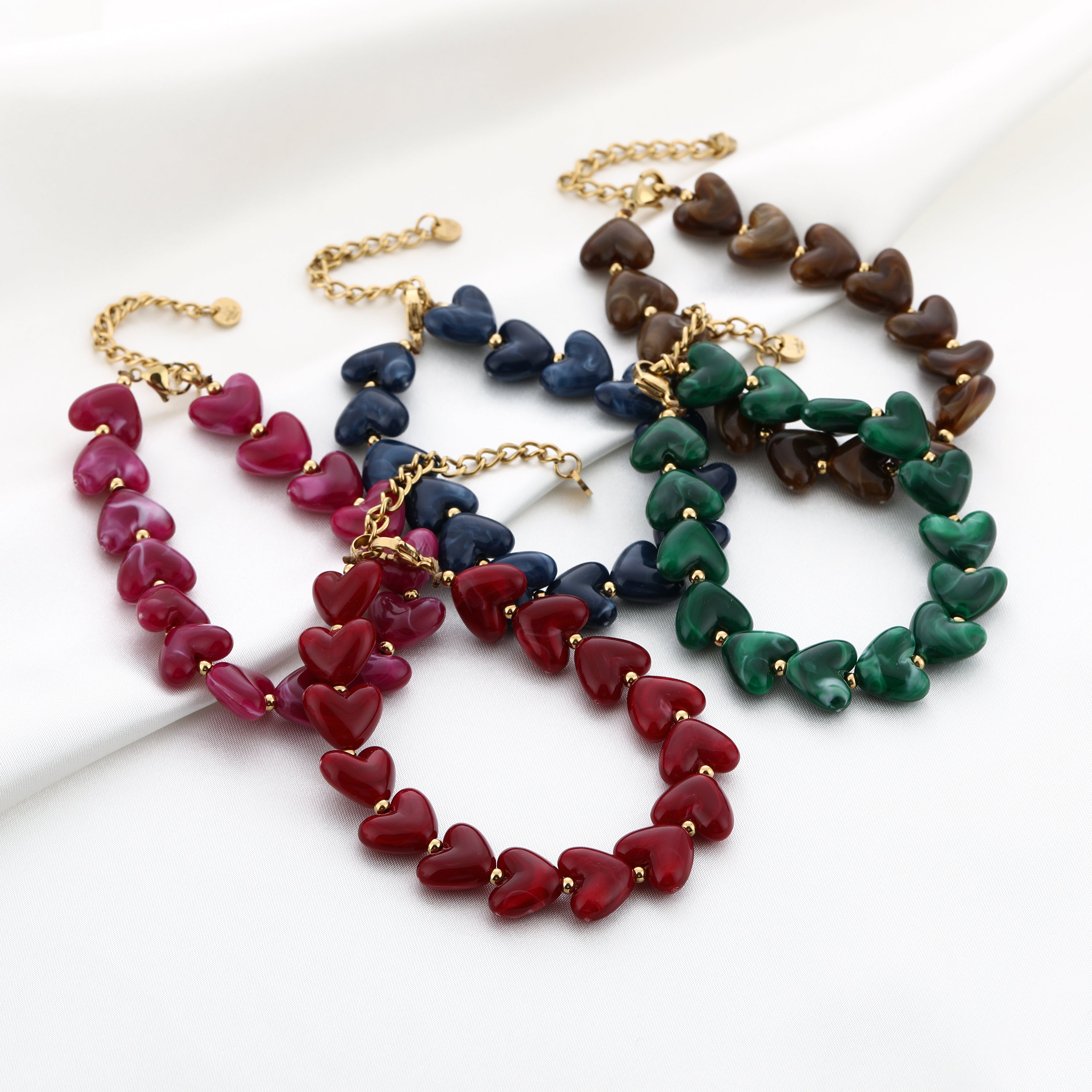 Kralenketting in hartjesvorm | Goud & Donkergroen