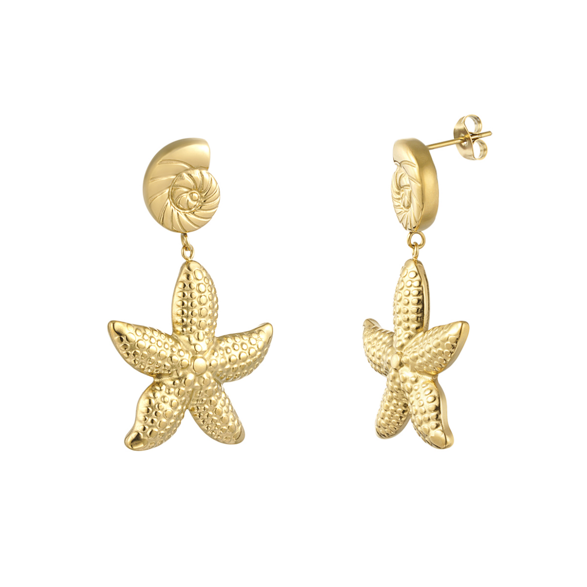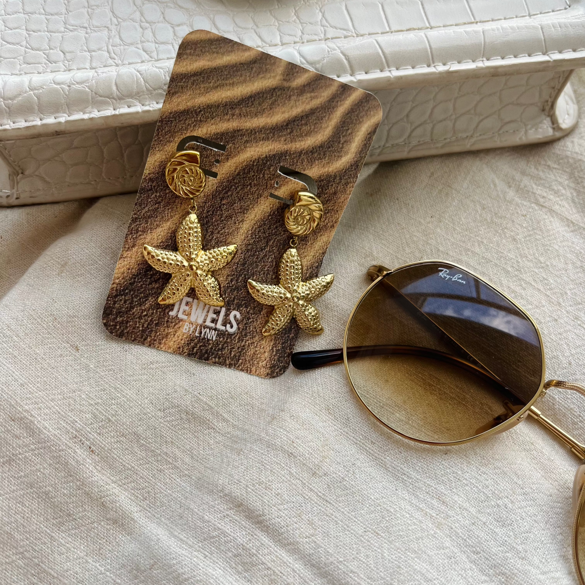 Deze goudkleurige oorbellen met schelpje en zeester zijn perfect voor de zomer en op vakantie! De oorbellen zijn knopjes met daaraan een klein schelpje en een wat grotere zeester. Ze zijn perfect voor een zomerse look of als finishing touch voor je vakantie-outfit. Deze schelp oorbellen zijn gemaakt van roestvrij staal en waterproof. Je kunt ze dus gewoon dragen tijdens het douchen, zwemmen en zonnen. 🌞
