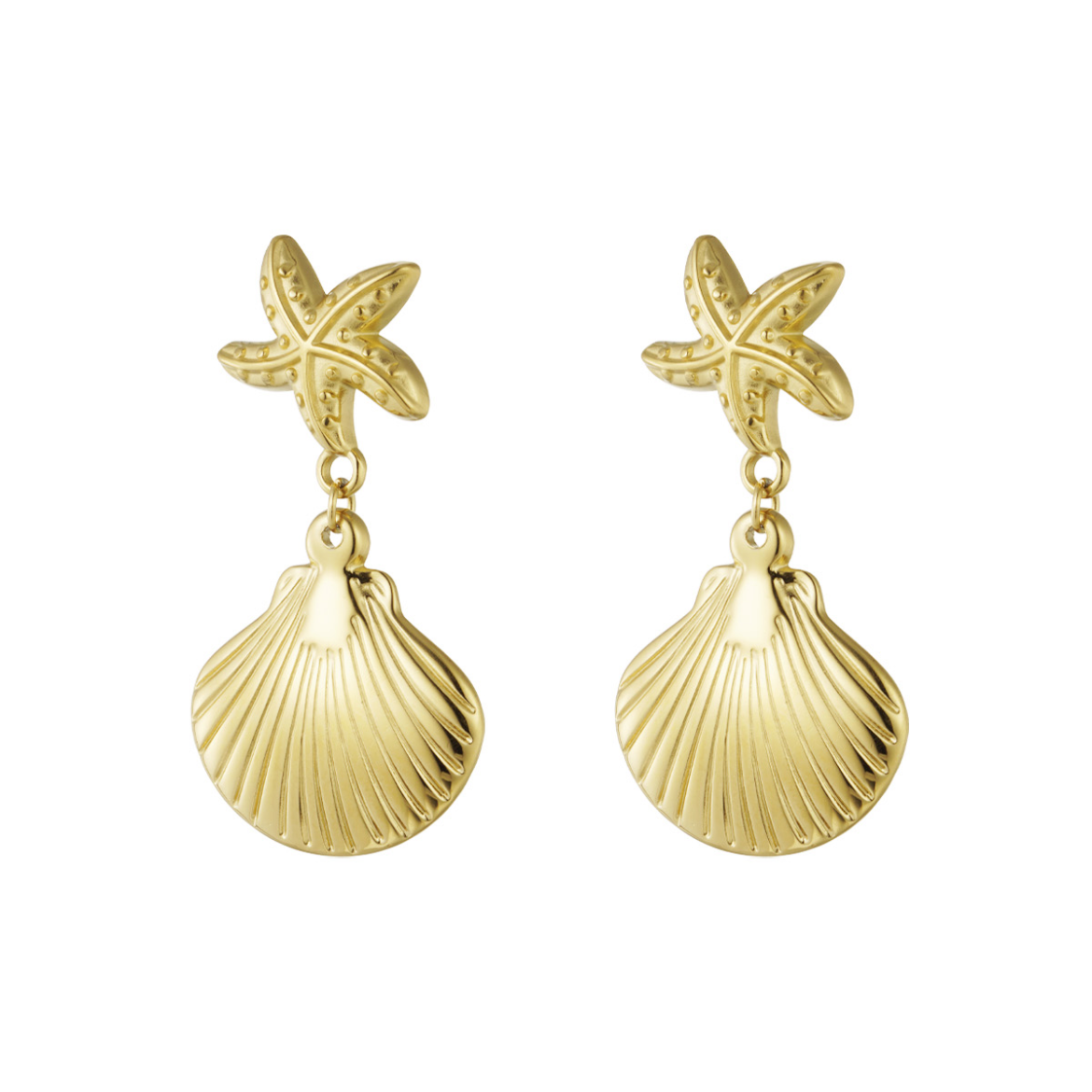 Deze goudkleurige oorbellen met zeester en schelpje zijn perfect voor de zomer en op vakantie! De oorbellen zijn knopjes met daaraan een kleine zeester en een wat grotere schelp. Ze zijn perfect voor een zomerse look of als finishing touch voor je vakantie-outfit. Deze zeester oorbellen zijn gemaakt van roestvrij staal en waterproof. Je kunt ze dus gewoon dragen tijdens het douchen, zwemmen en zonnen. 🌞