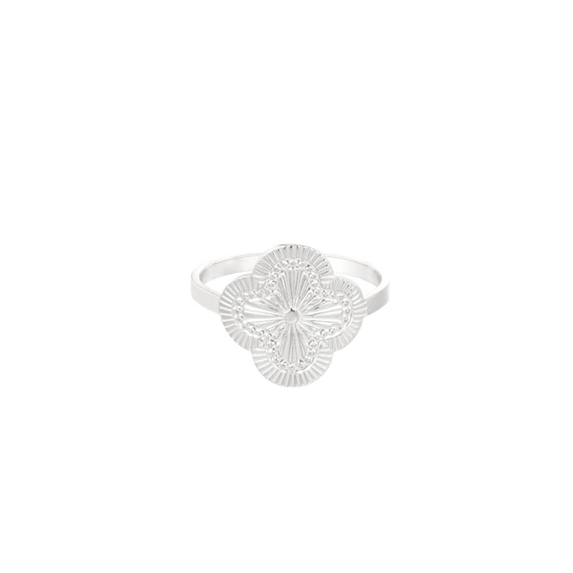 Deze leuke verstelbare zilveren ring met patroon is perfect om te combineren met andere ringen uit onze collectie. Doordat de goudkleurige ring verstelbaar is past deze om elke vinder. De ring is gemaakt van roestvrijstaal! ✨